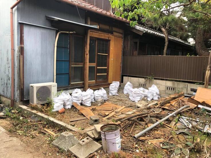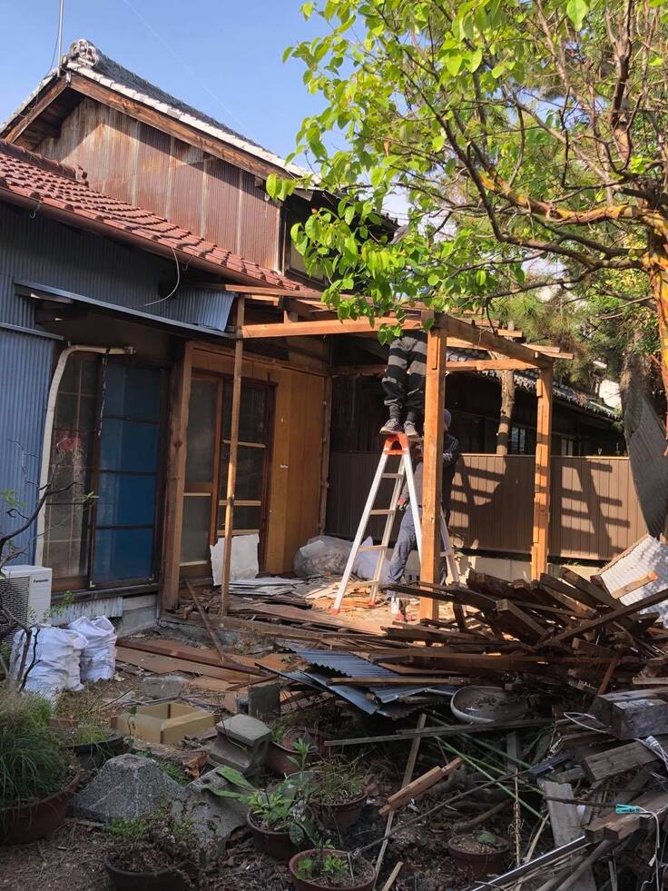 お庭として使える場所を広くするために、そのうちの1棟の一部を解体しました。