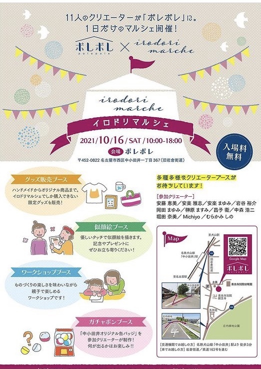 10月16日(土)10時~18時に、11人のクリエータによる、1日だけのクリエータマルシェ『イロドリマルシェ』が古民家ポレポレにて開催されます。