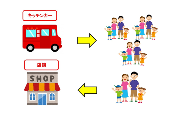 ゼロ・ウェイストとは、ゴミをどう処理するかではなく、ゴミを生み出さないという考え方です。「食品ゴミ」を減らす対策として初めからゴミを出さないよう「食」を提供できれば自ずとゴミは減っていきます。この対策の為、どうやってゴミを出さないよう提供するか考えてい時、キッチンカーで飲食の販売をしている方のお話を聞く機会がありました。キッチンカーといえば自ら出向き、そこで作り販売する為、注文されてから食事を提供でき、容器や食料廃棄の少ないとても効率的な販売方法です。さらに私が注目したのは、集客のある場所へ行けることです。
