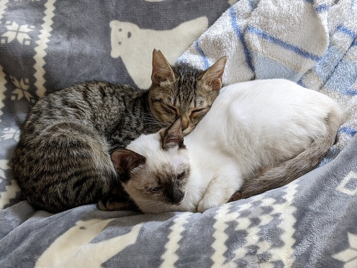 『だいち』と『るのん』は、同じ保護猫シェルターで生活をしていた為かとても仲が良く、舐め合ったり、じゃれ合ったり、いつも仲良く一緒にいました。