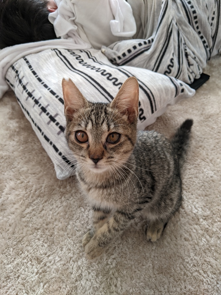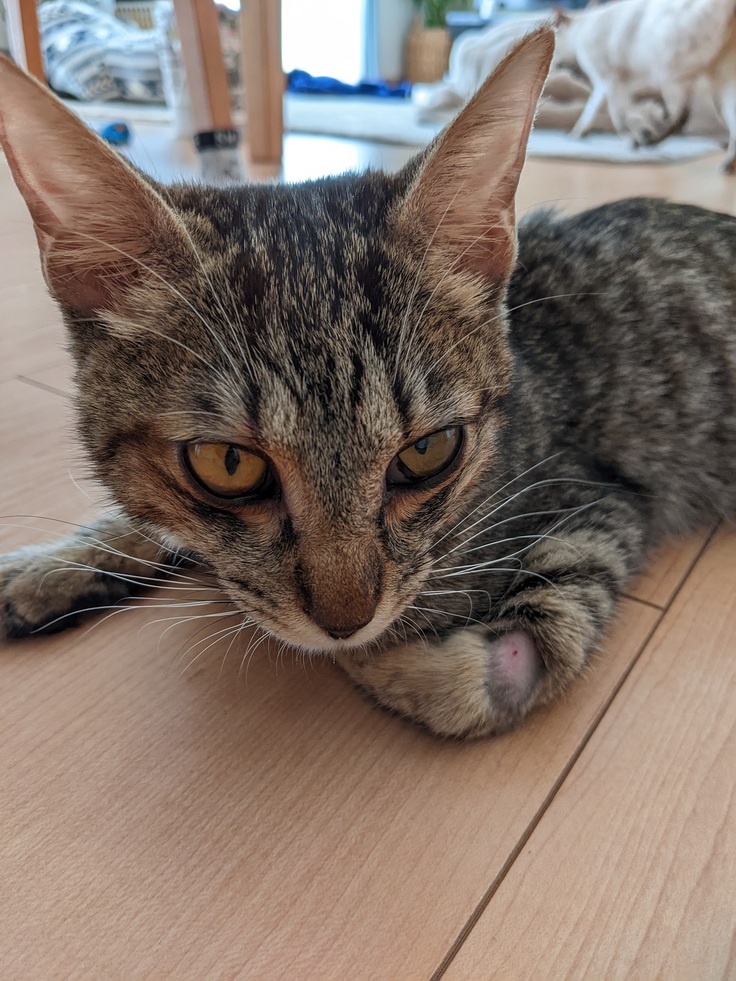 2021年8月に先住猫ちゃんが18歳の大往生で亡くなってから2~3か月たった頃、やっぱり猫ちゃんがいない生活が寂しいという子供達の願いを叶えるべく近所の保護猫シェルターに行きました。そこにいたのが生後4か月のキジ猫『だいち♂』でした。