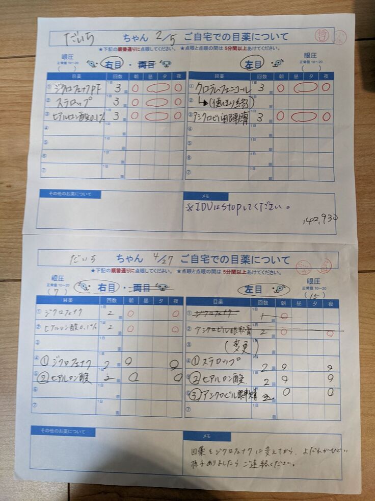 - 病院が遠い事、だいちの負担を軽くする為に、もう少し近くの眼科専門病院に変えてはどうか?との提案があり転院しました。