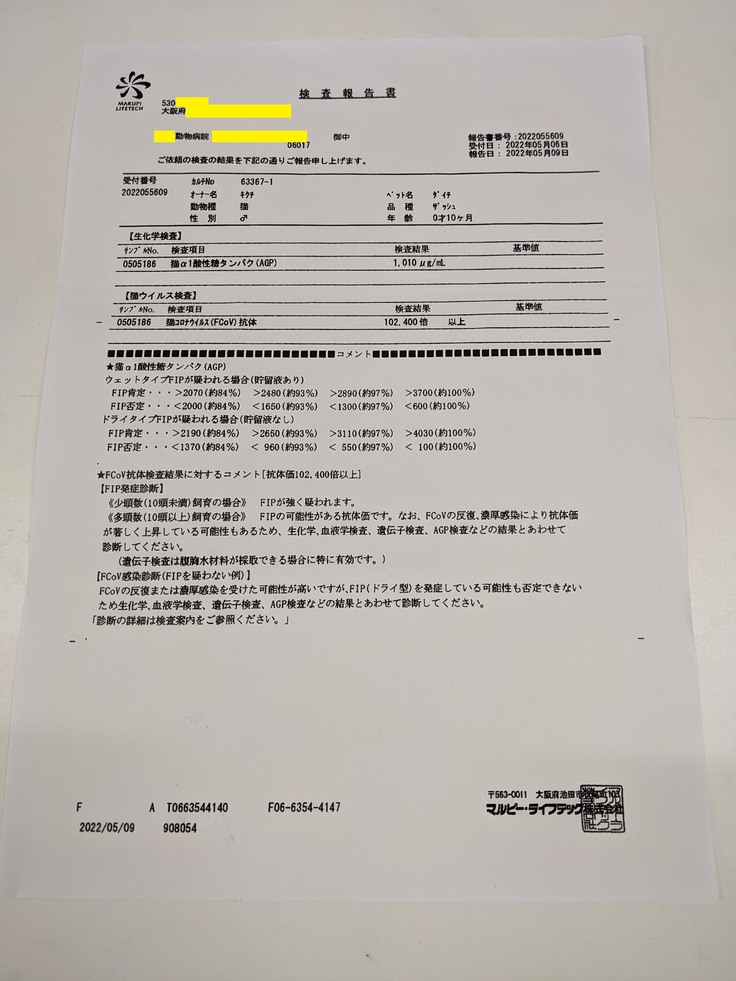 FIP(猫伝染性腹膜炎:ドライタイプ)との診断を受けました。