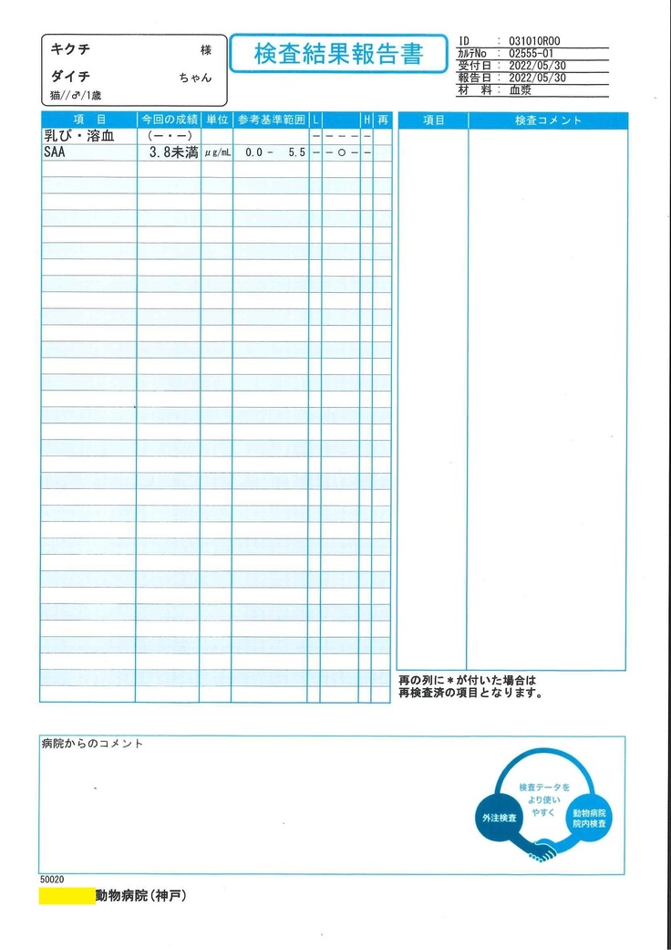 以下、掲載するすべての検査結果および明細書の資料等の掲載許可は得ております。