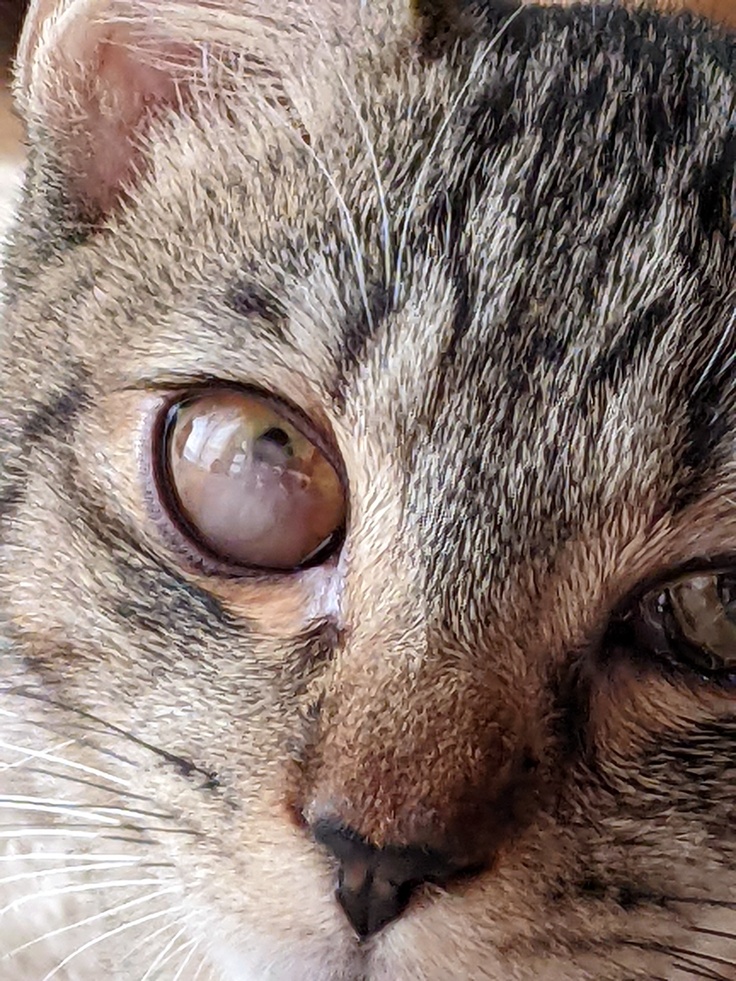 - 体調はあまり改善されないまま、次第に右目が白濁し始めました。