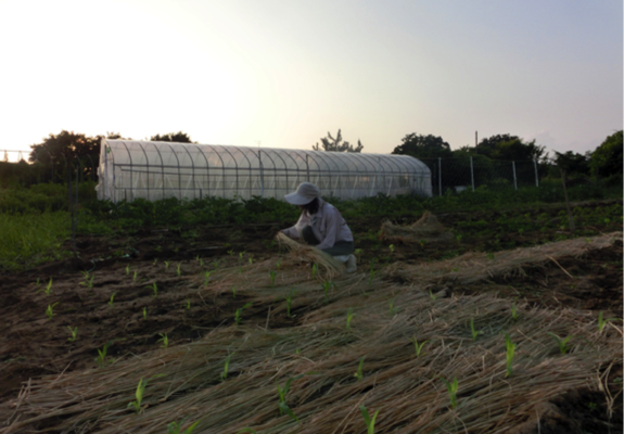 (藁を敷いて水分を逃がさないようにしています。河北潟の近くで田んぼ保全の拠点として生産している「七豊米」の藁を使用しています。)