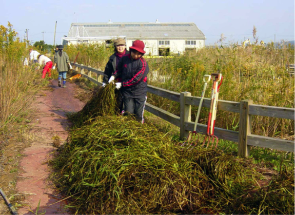 野生生物が息づく河北潟地域の環境保全に向けて、15年ほど前から取り組んできました。野菜づくりは、地元いきいき農園のみなさんに教わりました。