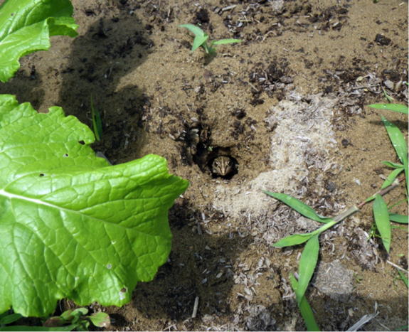 (野菜のそばには、トノサマガエルがひそんでいます【穴の中】)