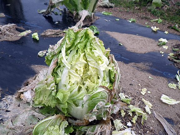 26日の朝、白菜、大根、キャベツがあちこちで食い荒らされていました。