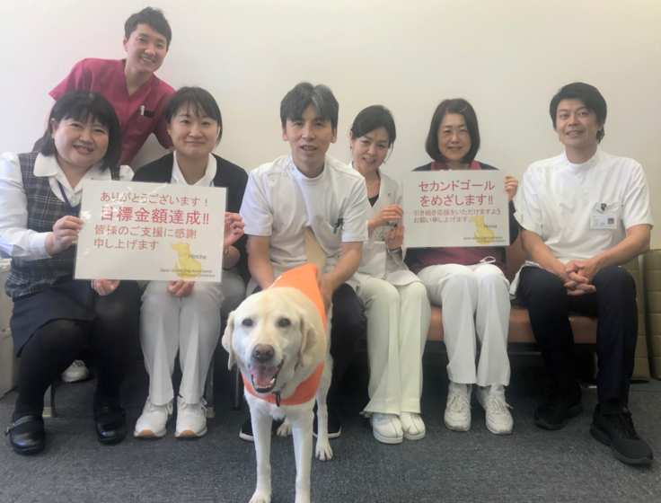 当院の動物介在療法を一日でも長く充実した体制で継続していくこと、引退後のモカに幸せに暮らしてもらうこと、これらを実現するために、残された期間に合計額400万円を目標として、ネクストゴールへ挑戦させていただくことにいたしました。