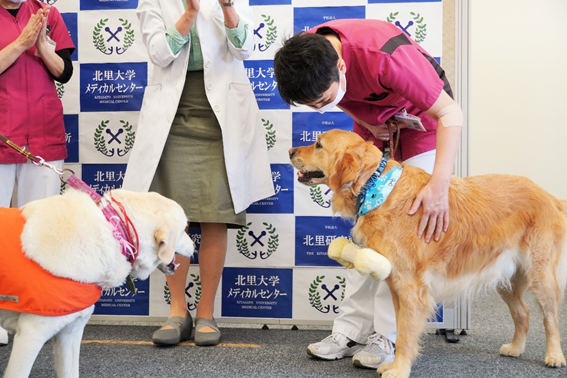 新型コロナウイルス感染症の市中の状況を鑑み、当院での動物介在療法は活動範囲の調整や一時休止を繰り返しながら継続させていただいております。