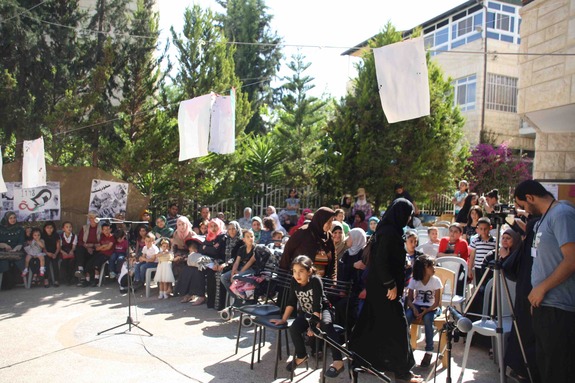 (ユースセンターでの発表会の様子です。右のほうに隣の家の花が見えます。)
