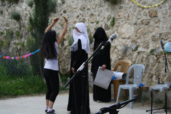 成果発表会のテーマは時期によって異なります。例えば、3月は女性の日を記念してお母さんへの日頃の感謝の気持ちを込めたイベントを実施します。12月はクリスマスです。パレスチナというとイスラム教のイメージがあるかもしれませんが、キリスト教徒も多いのです。もちろん、イスラム教徒の子どもたちもお祭り好きですからクリスマスフェスティバルには参加するのです。