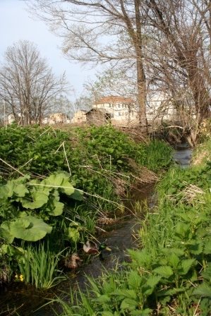 (住宅街に残された小川とマガモのつがい 2007年5月 北海道帯広市)