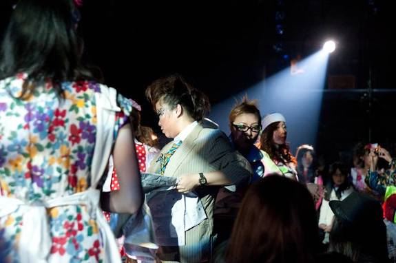 (ステージ裏は気合の入ったアーティストの緊張感が漂っています)