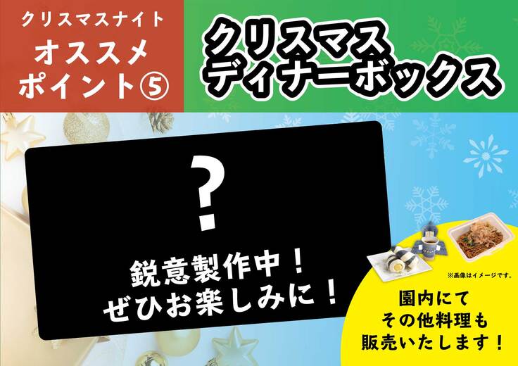園内ではディナーボックス以外のフードも販売しますので同伴者様の分など足らなければぜひご購入ください!お持ち込みももちろんOKです!