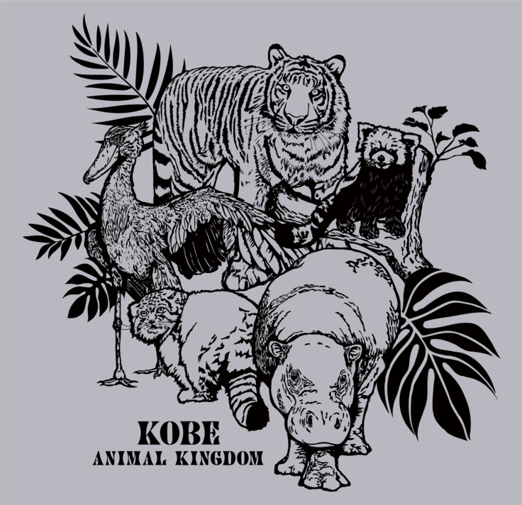 背中にはハシビロコウ、マヌルネコ、コビトカバ、スマトラトラ、レッサーパンダが集合していてとてもかっこいいデザインに仕上がっています!