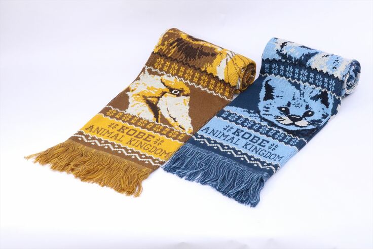 サイズはタテが約18cm、ヨコが約110cmとなっていて、模様はサーバル、マヌルネコ、コツメカワウソ、ハシビロコウの4種が編み込まれています。