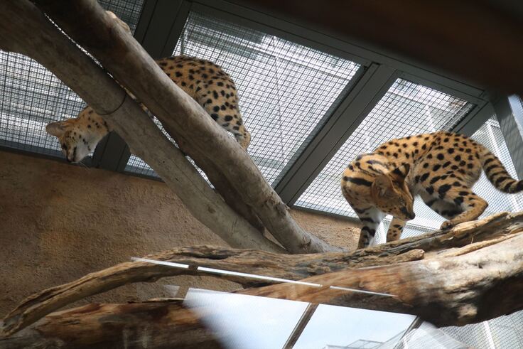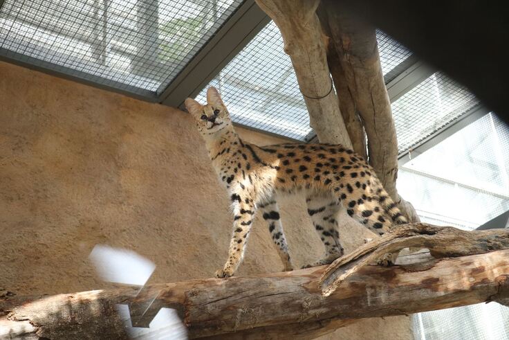 上部に向けて渡し木を設置することで、サーバルたちの樹上に登る性質をリニューアル前の展示場以上にご覧いただけます!