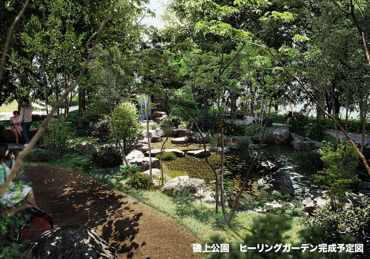 この素晴らしい空間を、いつでも楽しめる場所をこの付近でつくっていきたいと考え、三ノ宮駅から徒歩約7分ほどにある磯上公園で、期間限定の際に用いた樹木や石材を一部再利用したヒーリングガーデンを整備しようと考えました。