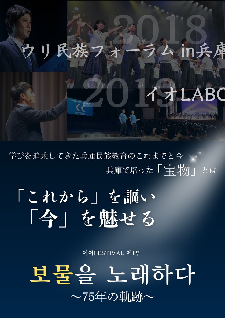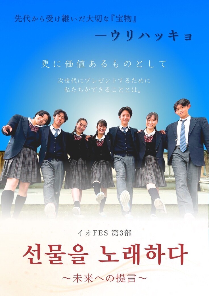 神戸朝高では、創立65周年記念公演のタイトルを「イオ(이어)]と題して以降、5年毎の創立記念行事に「イオ(이어)]から始まるタイトルをつけ、その間の教育成果とともに、変化する時代のニーズに対応した新たな試みの提案とその実践を重ねてきました。