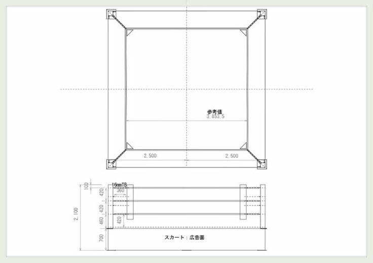 サイズは、5m×5m、高さなどは以下の図面のとおりです。