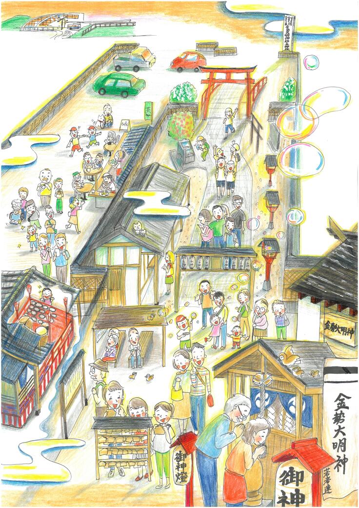これから先何百年経ったとしても、生きていくための一番大切なかたちや言葉にならない「もの」がきっと確実にこのまちにはのこっていく。またはそう願っているから、まだ見たことない素敵な未来を想って描けたのかもしれません。