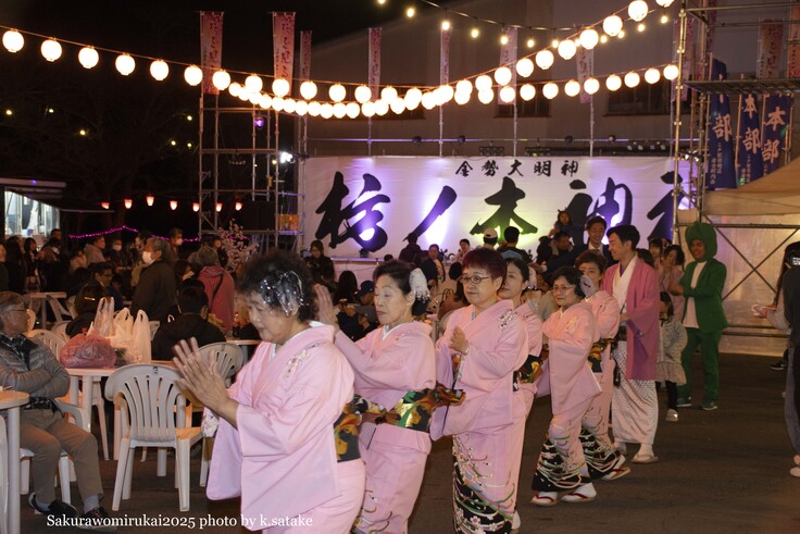 夜には美しくライトアップされる桜を、まちのみんなが楽しみにしているお祭りです。