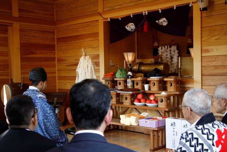 祭典儀式は従来、このように本殿に奉献物を供え、参席者も本殿内に着座して行っていました。