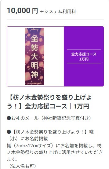 【枋ノ木金勢祭りを盛り上げよう!】全力応援コース|1万円