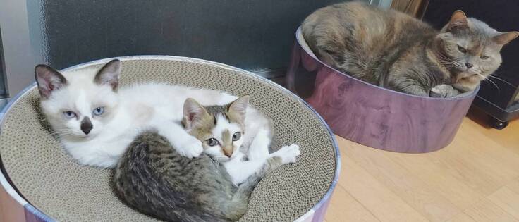 ご夫婦👨👩と一緒に暮らすよもぎちゃん😸とまめちゃん😸から
