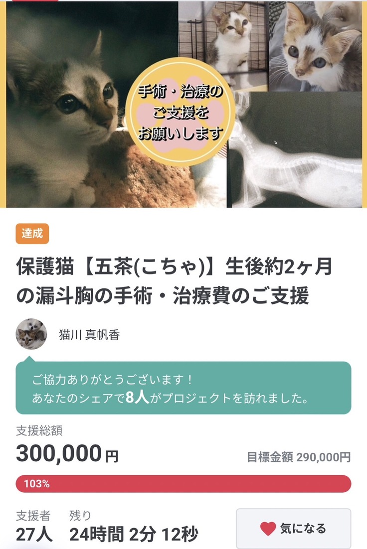 猫伝染性腹膜炎を患ったポンちゃんの明日をつないで頂けないでしょうか