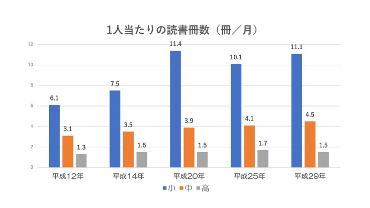 出典:第四次「子供の読書活動の推進に関する基本的な計画」(関係資料)(文部科学省)https://www.mext.go.jp/b_menu/shingi/chukyo/chukyo2/siryou/__icsFiles/afieldfile/2018/05/25/1404326_3.pdf を加工して作成