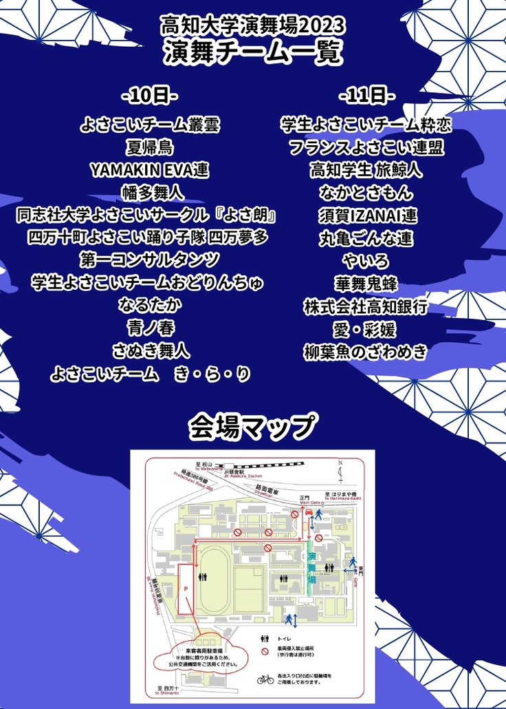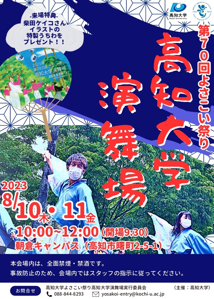 明日(10日)10時から高知大学演舞場でよさこい祭りです