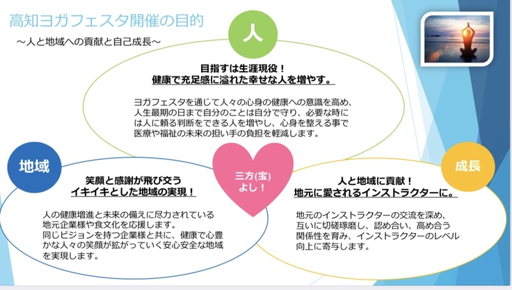 「人生100年時代を、心も体も元気に、自分らしく生きてほしい!」 そんな想いから始まった【高知ヨガフェスタ】は、今年で3回目を迎えます。
