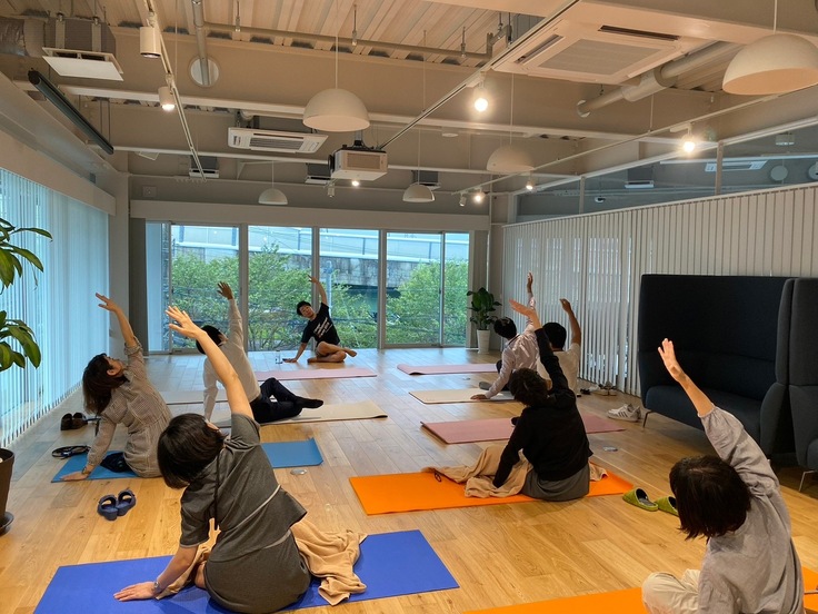 今回は、協賛をしてくださいました、フクヤ建設様への返礼として、毎週金曜日のお昼休みに行っているオフィスヨガについてご紹介させていただきます。