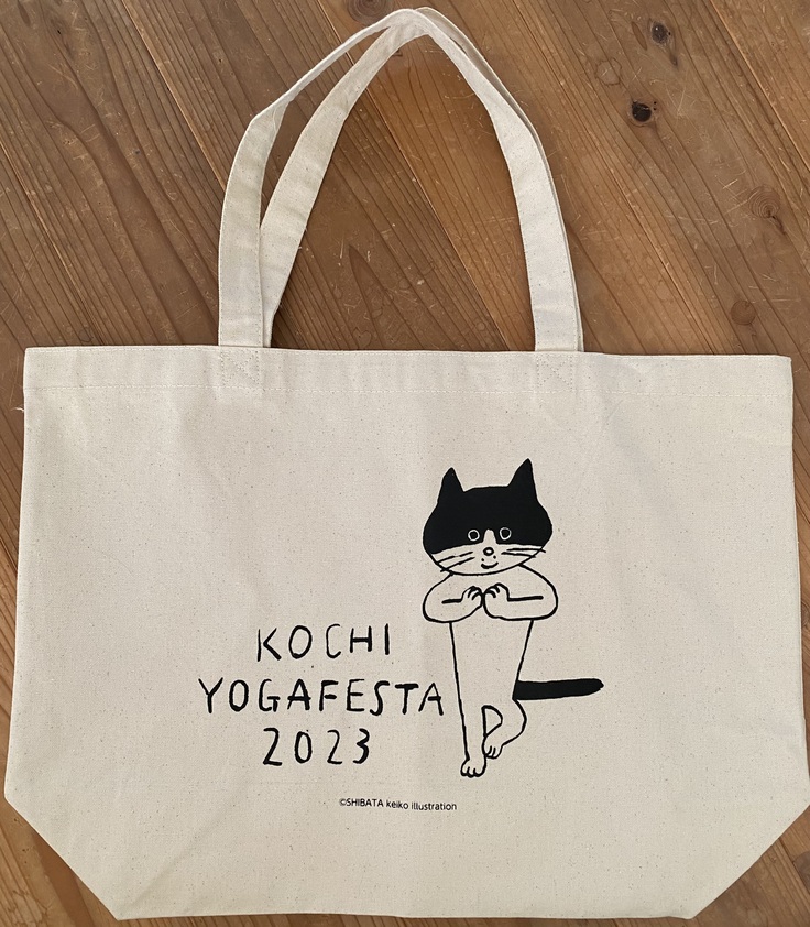 高知で活躍されている絵本作家、柴田ケイコさんが描いてくださった、高知ヨガフェスタ2023【限定】キャラクターのエコバッグをプレゼント!