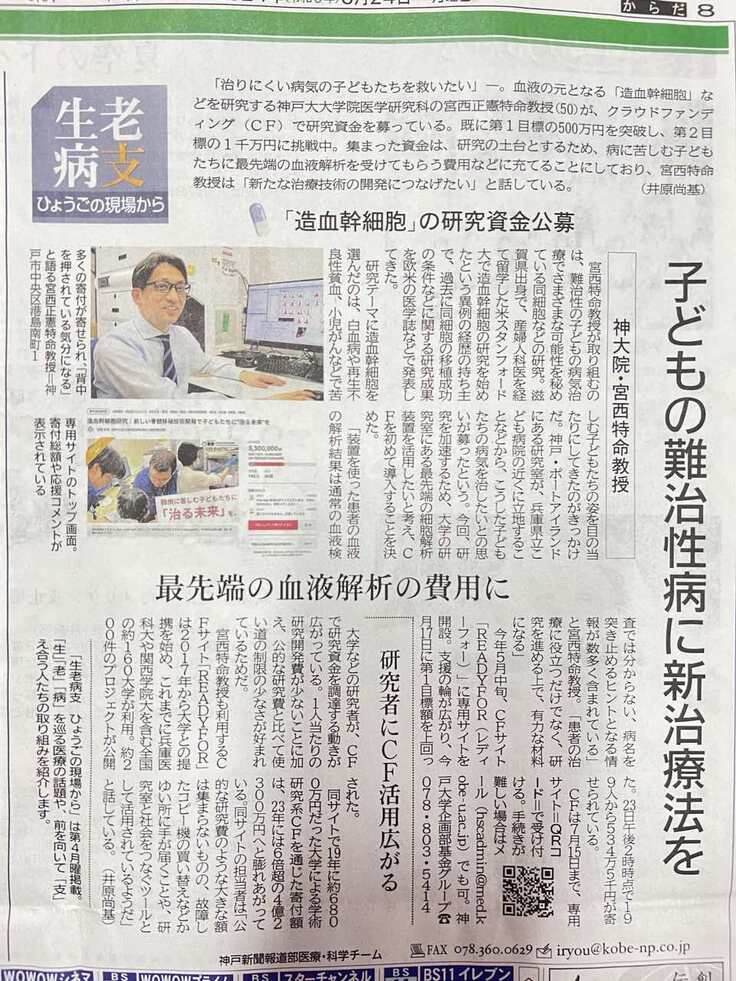 <生老病支>ひょうごの現場から、のトピックにて、私たち宮西研究室の研究概要をご紹介いただいたのち、クラウドファンディングのシステムについても触れております。