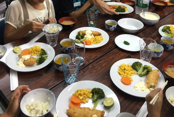 みんな、食事の配膳が始まると