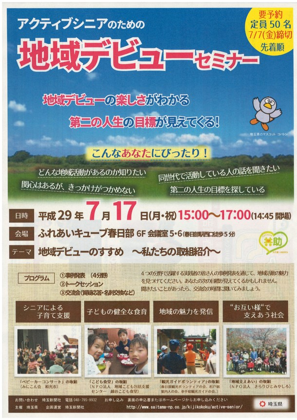 先ずは7月17日(月・祝)埼玉県主催のセミナーで「子どもの健全な食育」について講演をさせて頂きます。