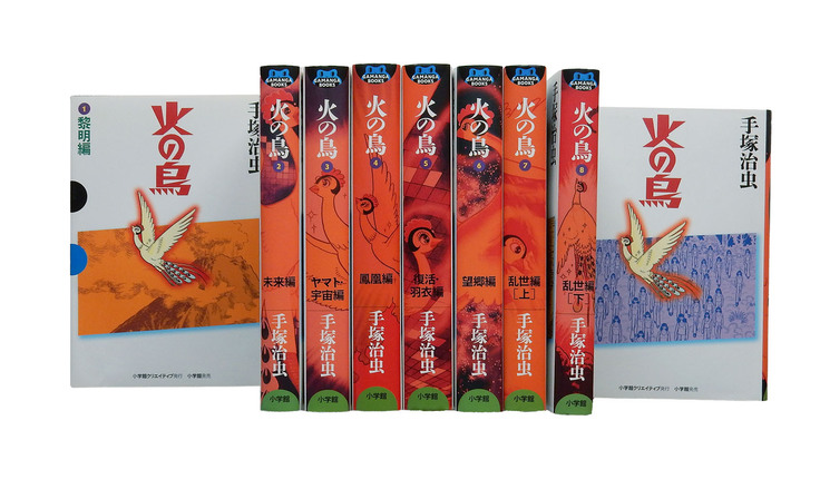 今回は手塚治の漫画『火の鳥』。写真の他に太陽編2冊を加えた11冊です。