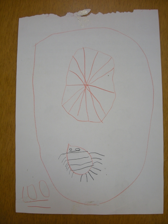 かぞくの家の絵は3歳、ダンゴムシの絵は4歳のときに描きました。