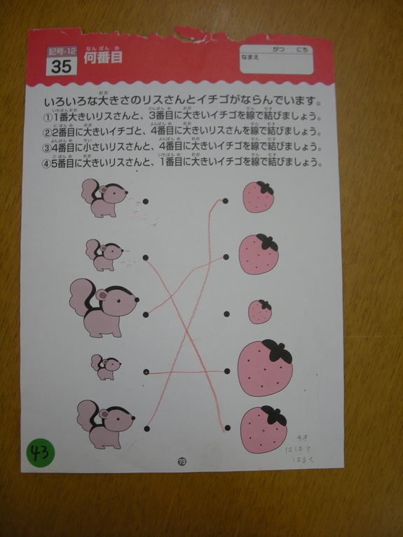 お勉強ドリルをしていたから、100点の丸があったのでしょうか。