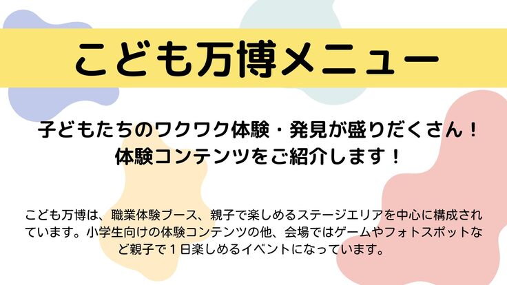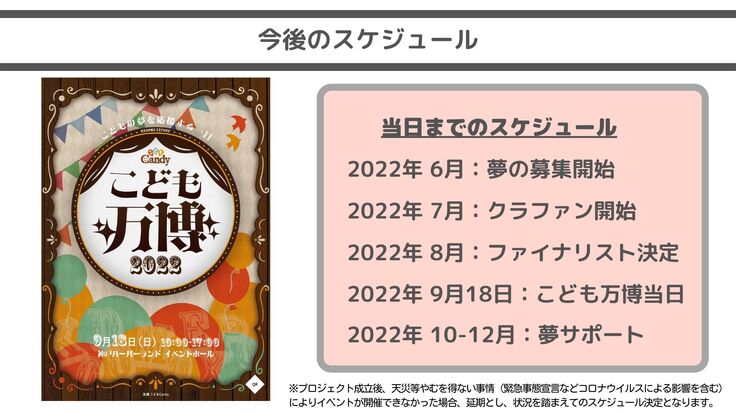 9月18日に神戸ハーバーセンターにて、子供の夢を応援する支援イベント「こども万博」を開催する。集まった資金は全額、万博開催費と子供たちの夢を叶えるために使用させていただきます。