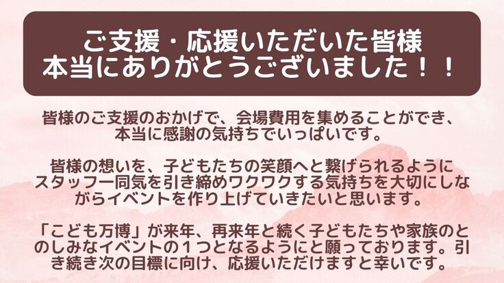 この企画をただただ支援したい!という方のためのリターンになります。支援者様に、主催のこどもCandyより、感謝のメールを贈らせていただきます。※リターン提供時期は、2022年10月以降になります。