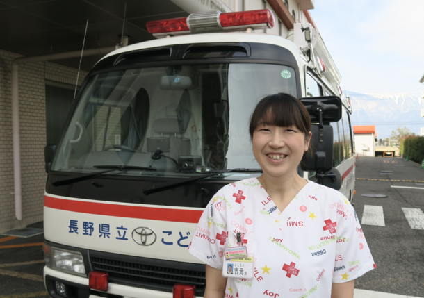 医師、ドライバーと続いたスタッフの紹介ですが、本日は初めての看護師の登場です。劇症型心筋炎の男の子のご紹介を以前にさせていただきましたが、その際に前澤医師と搬送を共にした吉元看護師です。