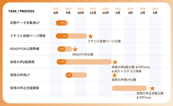 9月:クラウドファンディング開始(〜11月予定)、保育の声開発開始