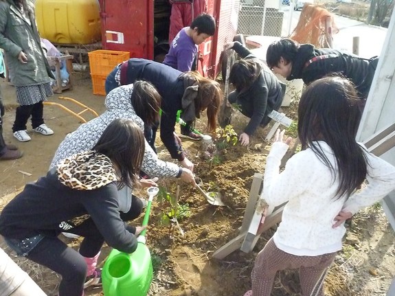 子どもも一緒になって植樹して、最初は緊張していた学生さんたちの顔からも自然と笑顔が。