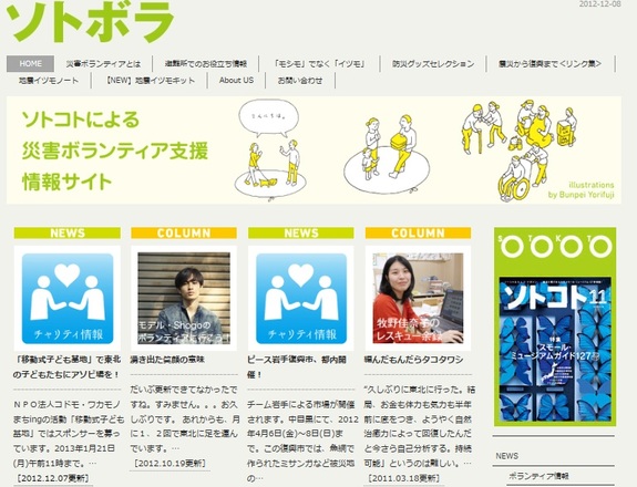 環境雑誌『ソトコト』が運営する北日本関東大震災の被災地、避難所、ボランティアの方々を