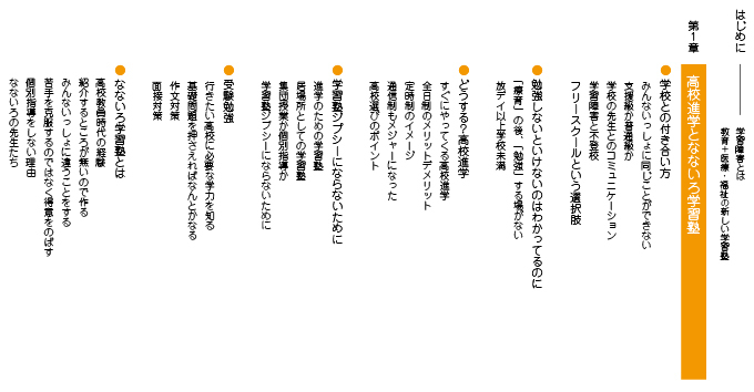 この書籍では、発達障害(ADHD、ASD、LD)や不登校のお子さまの「学校との付き合い方」から「なぜみんなといっしょに同じことができないか」といった特性のお話や、『なないろ』が大切にしている「教育+医療・福祉の新しい学習塾」がどういうものか、また「高校進学に向けてどういったことをしていくか」など具体的なメソッドのお話も入っております。